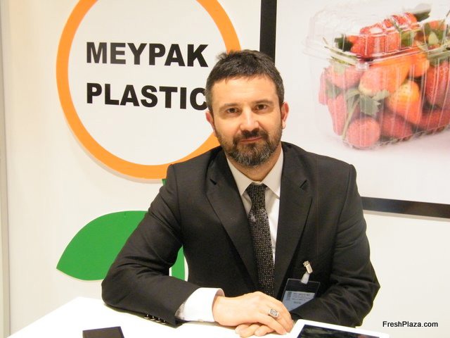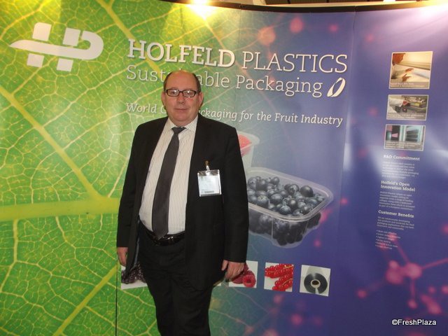 John Bray from Holfeld Plastics, promoting the range of packaging for fruit and vegetables.