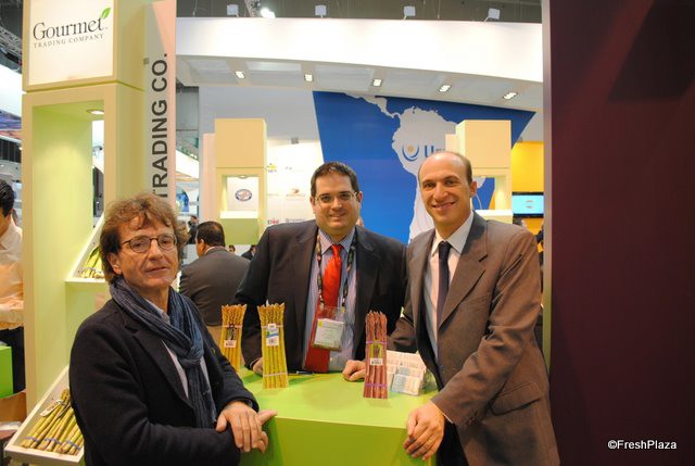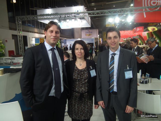 Irish fruit and vegetable company Donnelly were at Fruit Logistica to promote the company and gain more suppliers. Ciaran Donnelly, Alan Waters and Kevin Durkin.