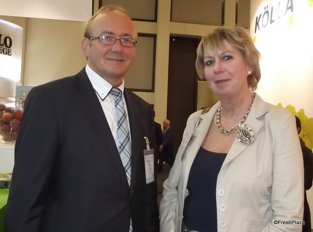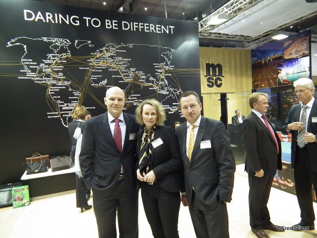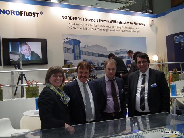 Britte Heine (daughter), Marketing and Communications, Horst Bartels, founder, owner and CEO (father), Dr Falk Bartels (son) Chief of IT Department, board member and Turstan Reichert, head of fruit logistics at family company Nordfrost. Nordfrost were presenting a new fruit sea terminal at Fruit Logistica.