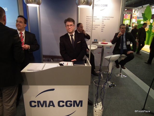 Eduoard Monnoyeur, Commercial Manager at CMA-CGM. The company were located in Fruit Logistica's hall 25, a collection of logistics companies and Latin American businesses. Like many logistics solutions providers, CMA_CGM were hoping to develop business links with the South American continent.