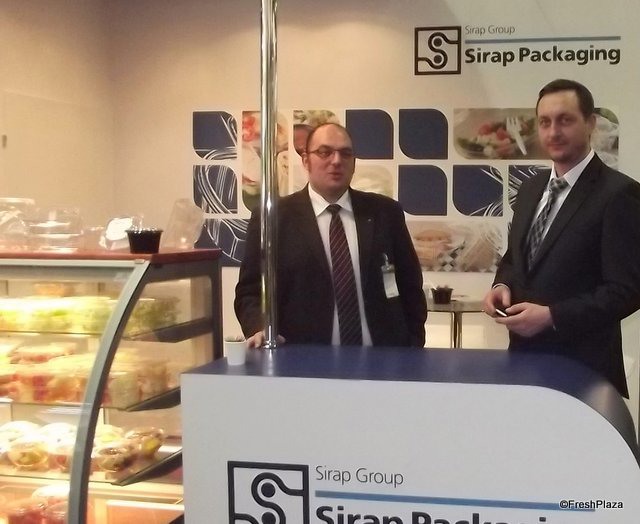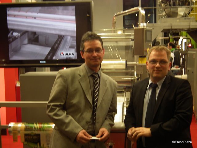Mattias Schwarz and Piotr Dolezko promote fresh fruit packaging.