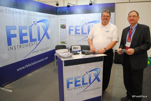 Michael Larman (Felix) and Ralph Mohlin (NYKCool), Felix provides F-900 Ethylene Gas Analyzer. This instrument provides accurate real-time measurement of ethylene gas concentrations, in a compact package suitable for controlled atmosphere and laboratory use.