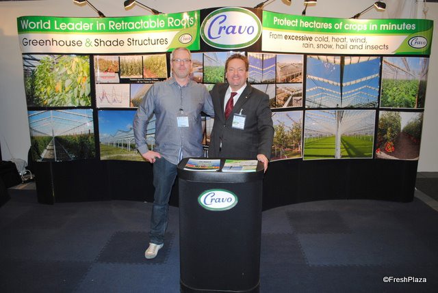 Robert Rouhof and Benjamin Martin from Cravo, who provides retractable roofs for greenhouses.