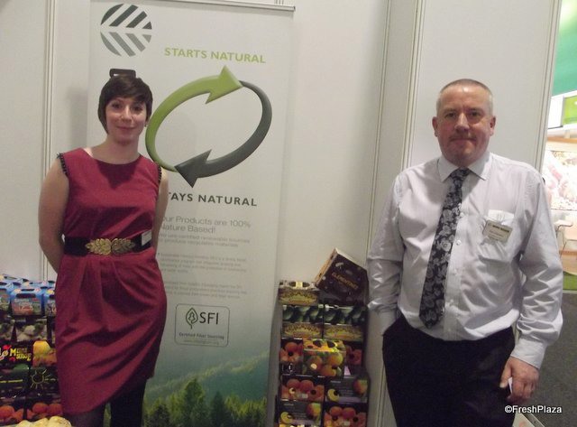 Gemma Jackson and Glyn Champion from Graphic Packaging show the new range of paperboard packaging solutions for fruit and vegetables
