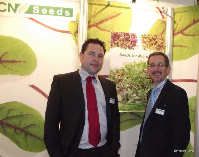 Eldad Ozery and Samuel Arad from Viva Agirculture, an Israeli company who grow various fresh produce.