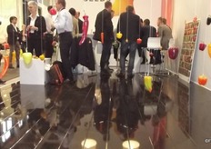 Emmanuel Descloux is showing a new display for supermarkets. If you'll take a product the screen will have some info on the product. A you can see in the photo, Emmanuel is holding chicory and this is also displayed at the screen.