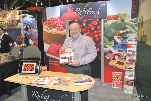 "David Anthony of RubyFresh is promoting his jewels. Pomegranat arils to add in salads, but now also in a small cup. Easy for childeren to "drink it", instead of using a spoon."