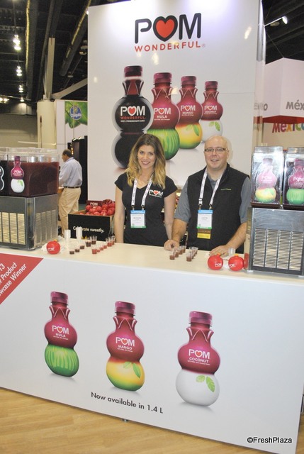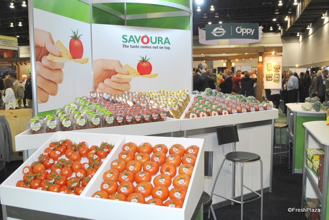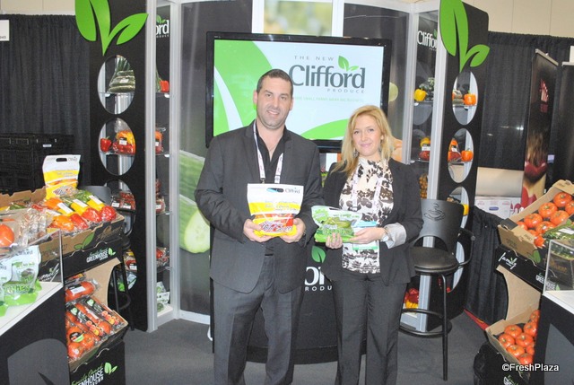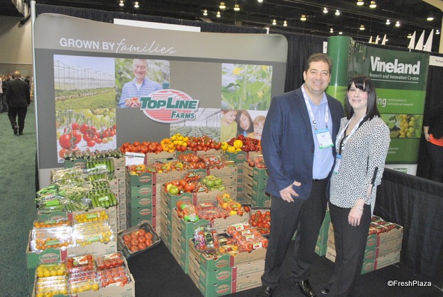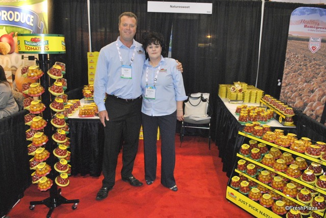 David Leitch and Kathryn Ault from NatureSweet Tomtatoes. They promot new merchandising olutions and a new packaging: a bigger pack for tomatoes.