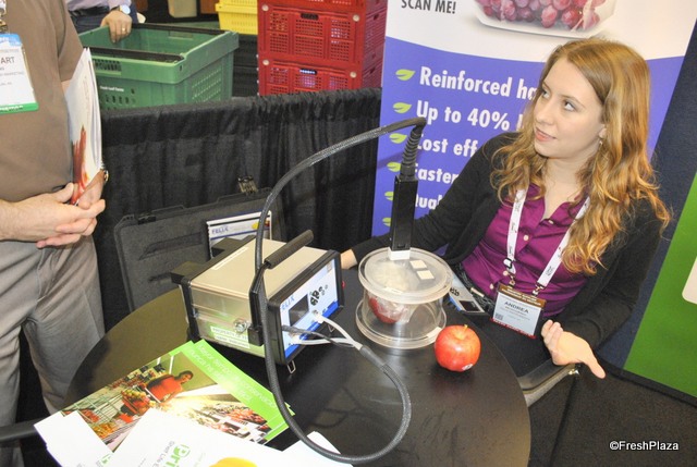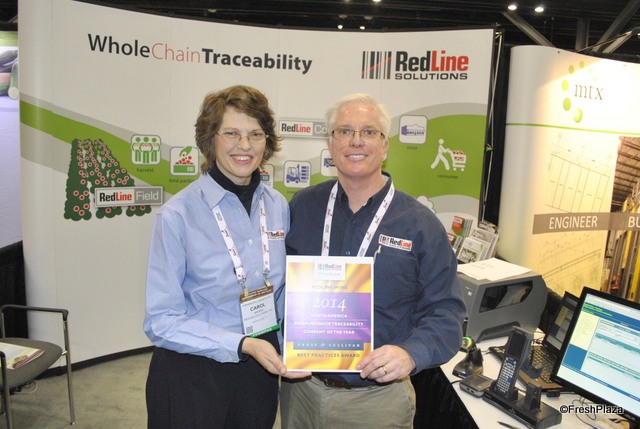 Carol Golsch and Todd Baggett from RedLine Solutions. They have a new system, which is eideal for the bin inventory. When growers use their bins for harvesting, they can print already labels on the bin, when they start harvesting. In this case only the bin needs to be scanned, and all the information comes out directly. This saves a lot of time, instead of haveing to fill all info manually on a form and then into the computer. This product will be available in the fall. Besides Red Line Solutions is a proud winner of Frost & Sullivan Best Practices Awards 2014
