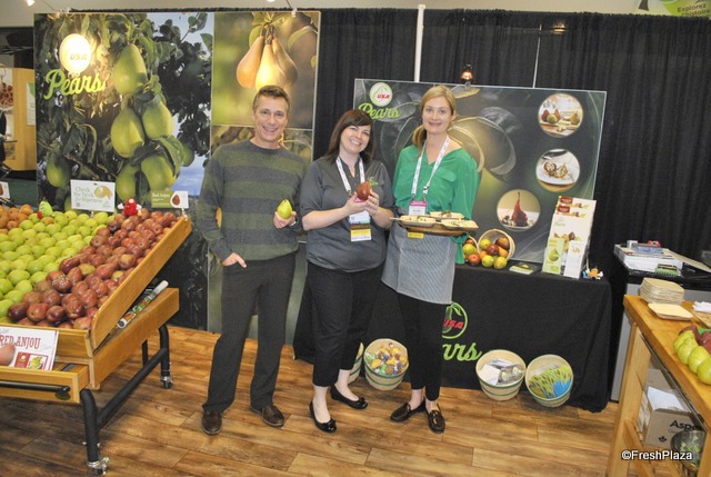 Kevin Moffit, Cristie Matter and Hilary Finch from Pear Bureau Northwest, promoting pears within salads.