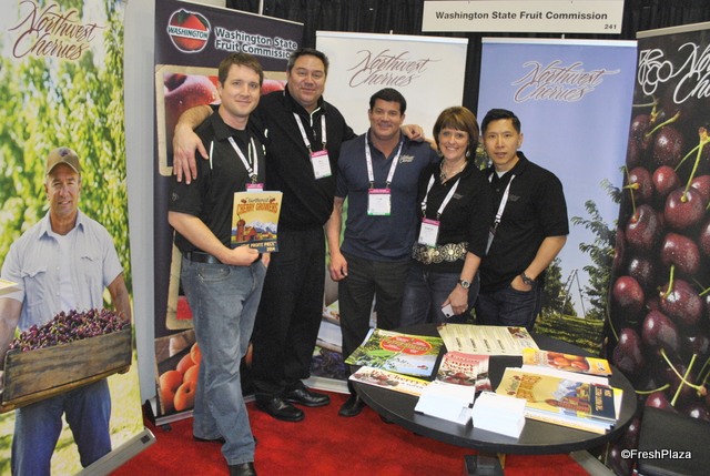 The team of Northwest Cherries. The cherry season looks promising, as the weather has been very favourable. If the weather keeps favourable they expect to ship 20,000,000 20-pounds boxes of cherries. June will probably be a big demand, as California is short this year.