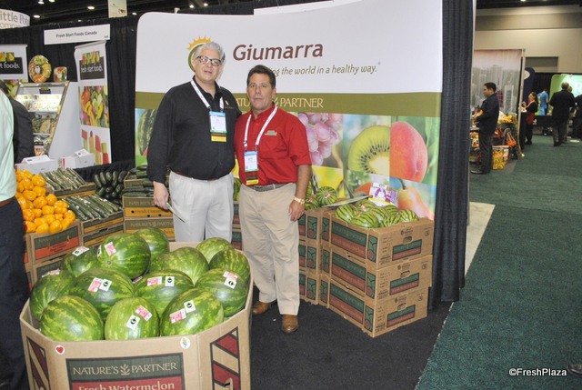 Gil Munguia and John Corsaro from Giumarra. They have fairtrade watermelons from Mexico. In a few weeks they will also have table grapes, with some new promising varieties.