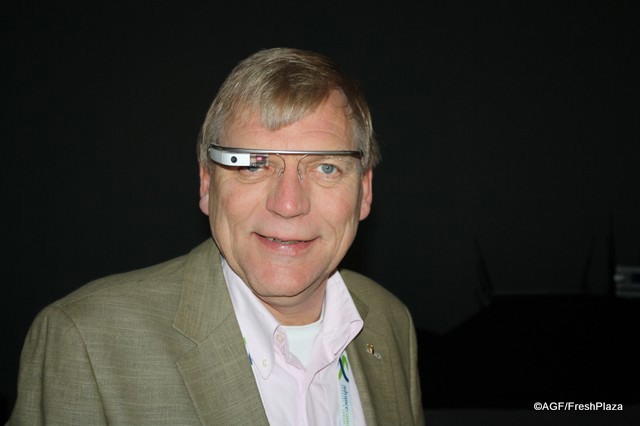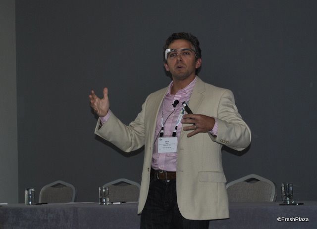 Elliot Grant demonstrate the Google Glass. He expects this will be used more in the future by growers.