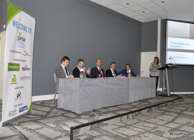 Boet Mouton from Mouton Citrus, Drew Reynolds (Technical Director) from Total Produce, Antonio Gomez Bazan CCO from Camposol, Gé Happe from Ahold Europe, Cindy van Rijswick from Rabobank and the moderator Mayda Sotomayor, CEO from Seald Sweet International