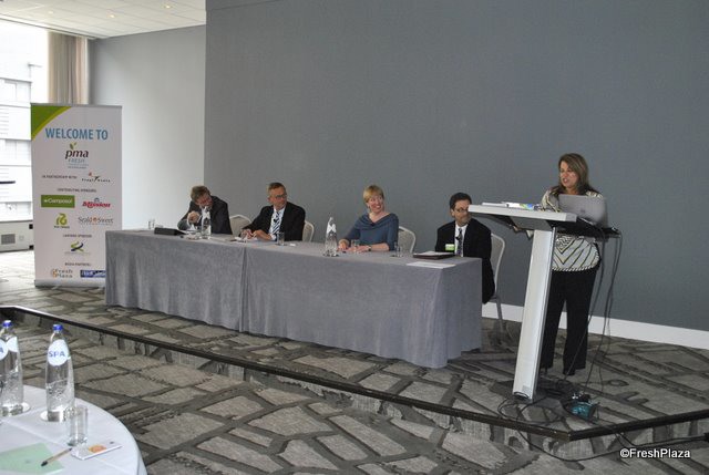 Dominic Edwards from Asda, Gé Happe from Ahold Europe, Oleen Smethurst from Costco Canada and Anthony Barbieri from PMA with moderator Mayda Sotomayor, CEO from Seald Sweet International