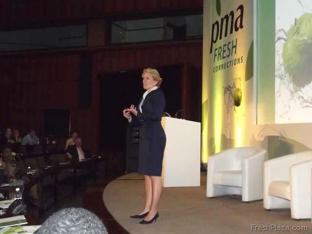 Cathy Burns, President of the PMA USA. Opens the first plenary session on The Evolving Global Marketplace.