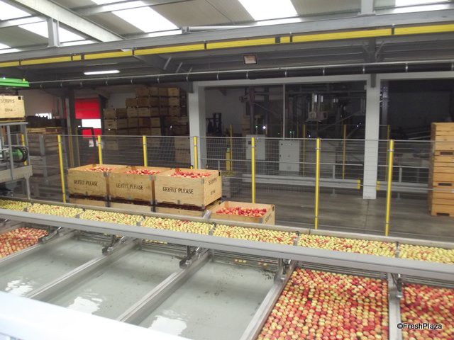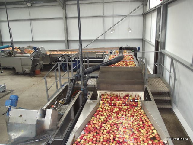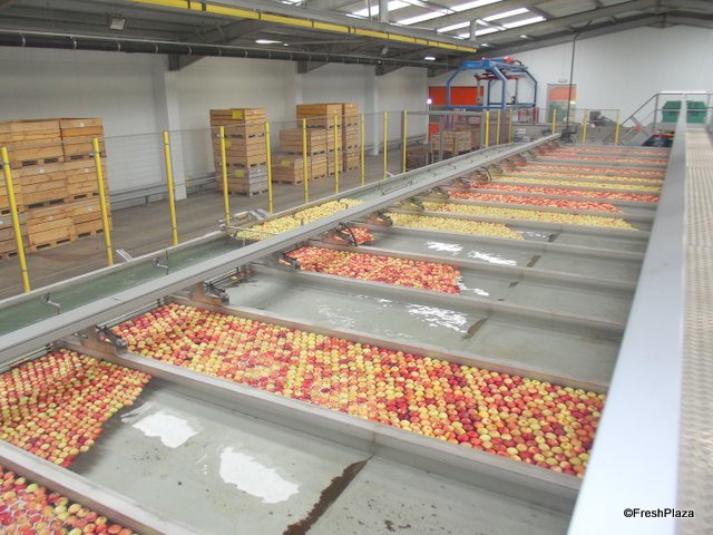 The apples head for sorting.