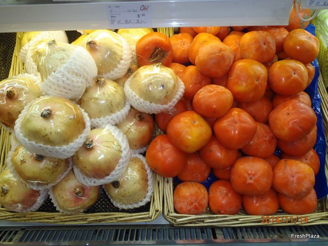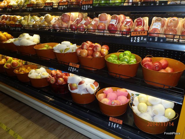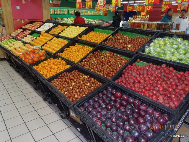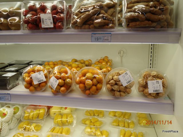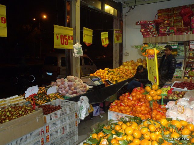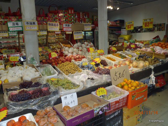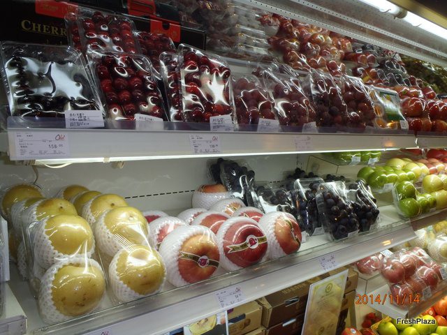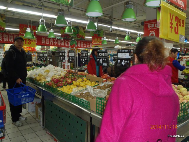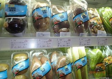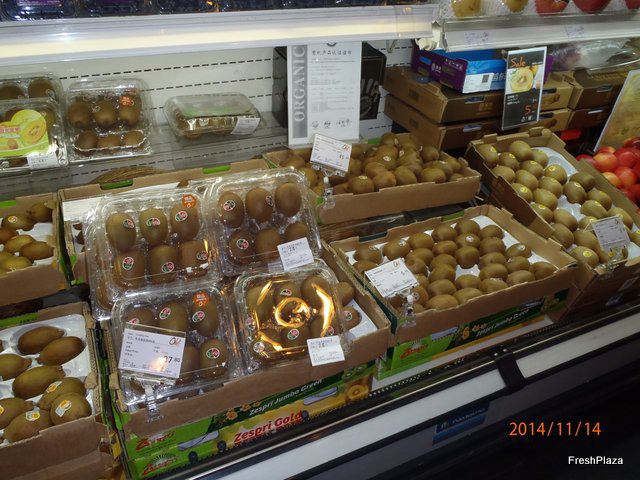 Nice quality Chinese kiwis on display along side Zespri, both green and gold vareties.