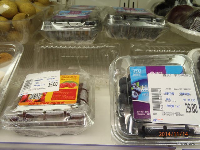 Bluberries from Mexico, a premium buy atalmost 4 Euros a pack.