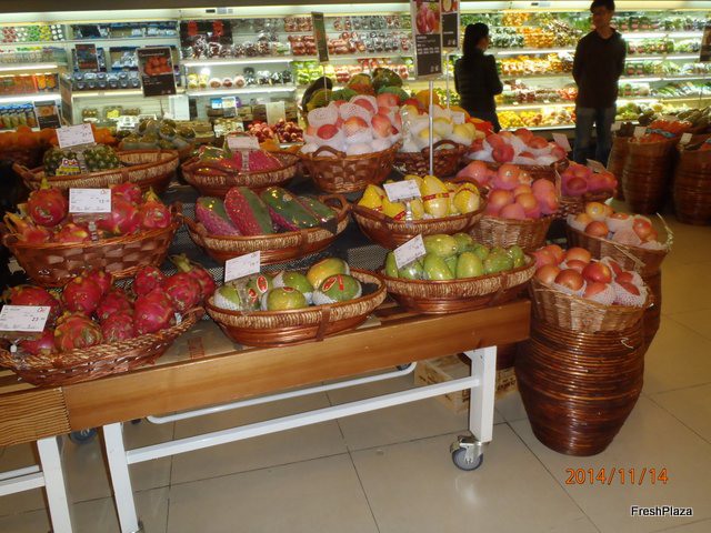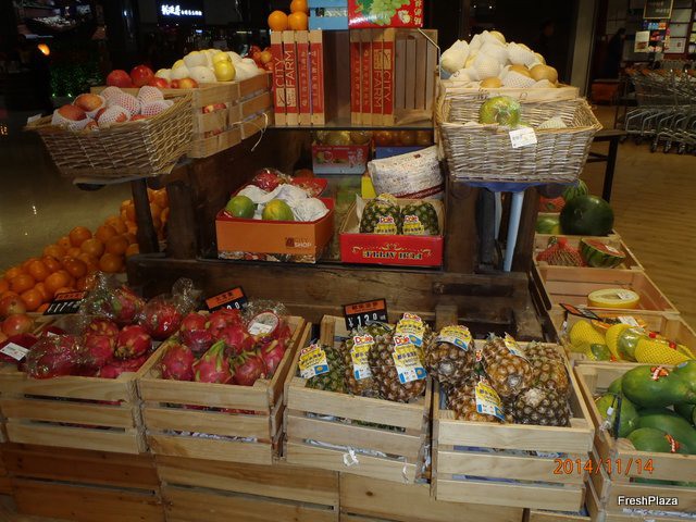 The fruit in City Shop was well presented in rustic baskets and wooden trays.