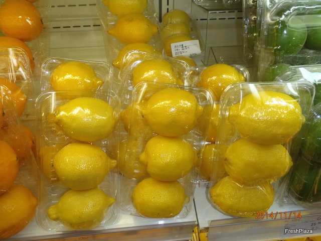 Three lemons packaged, lemon are the 'next big thing' in China. They are becoming very popular for heath benefits and adding to a glass of water or an alcoholic drink.