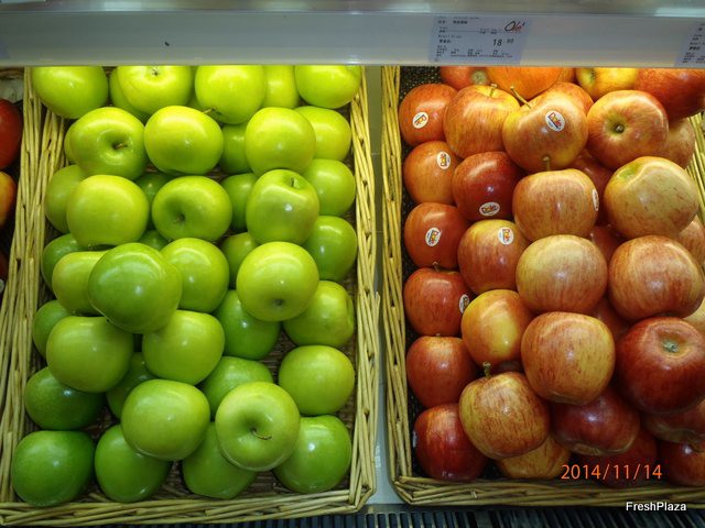 Apples, packed in twos but also available individualy, nicely displayed in tubs.