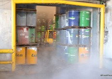 The sweetie continues to get desinfected. They do it through a bath of hot water (50-55 degrees celcius). They are dried first in a drying machine and then on a drying mat. They need to be 100% dry, in this case the wax will be perfect on the citrus. The wax is going with drips on the citrus and rollers turn the citrus in order that the wax is around the fruit. Then it goes again in a drying machine.