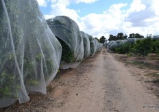 An orri orchard covered with hail nets. The weather can be very weird and they can have in once a bit of hail. This way they protect the trees and the fruit.