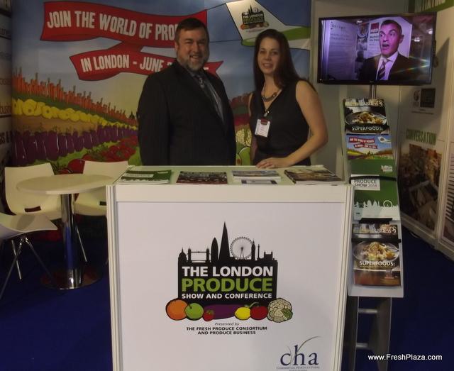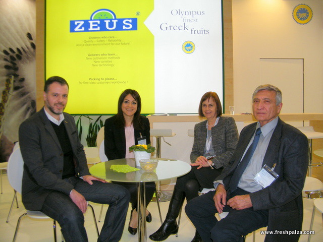 at the Zeus (Greece) stand: Antonios Ioannidis (Sales Manager) with Christina Manossis (General Manager) Zeus - Greece with Joy and George Kroussaniotakis of Zeus-UK; commenced its activities with the cultivation, production, standardisation, packing and trading of kiwi.