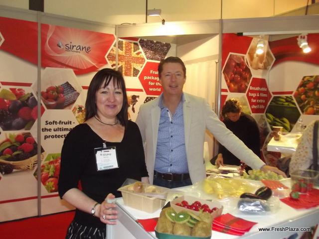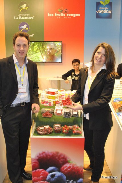 Stéphane Decourcelle and Mélanie Planchon from Les Fruits Rouges promoting their French berries, but also imported berries