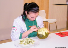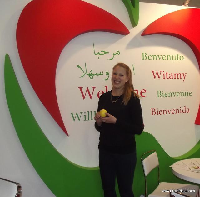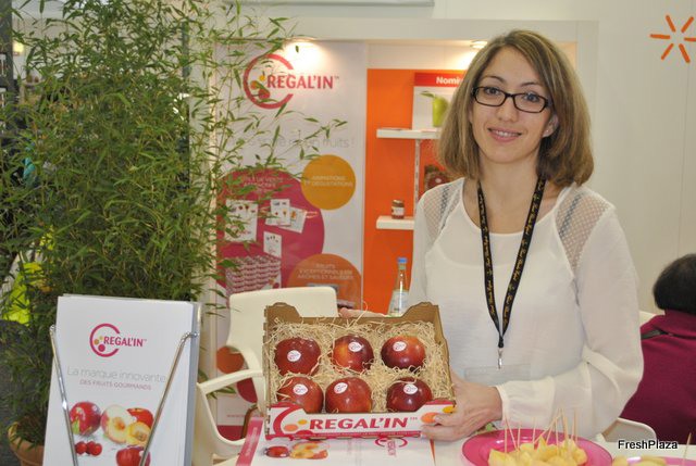 Aurélie Nunez from Regal’in presents the applet hat was nominated for the Fruit Logistica Innovation Awards. A cruncy sweet apple with a bit acid in it.