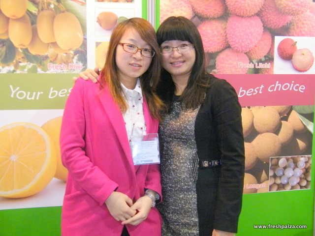 Vickie with little sister Anna of Xiamen Bona (China), recognized around China as a professional fresh fruit and vegetable supplier. Products include honey pomelo, mandarin, tangerine, navel orange and fresh carrots.