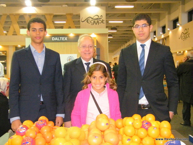 Vice President Ahmed El-Adawi of Alwalaa (Egypt) with mom Ms. Karima and wife Rozetta; the company was founded in 1985, it offers the finest Egyptian oranges to all of its customers in the neighboring Arab countries, European Union, and North America, according to international standards