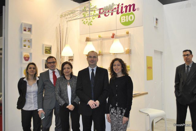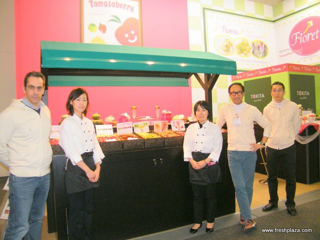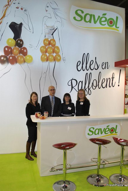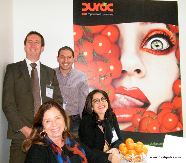 Sales and Marketing Director Ms. Fatiha Charrat(r) of Delassus (Morocco) with her team; Delassus has been in the business for over 60 years already specializing citrus, cherry tomatoes, grapes and flowers.