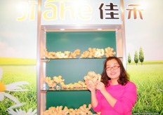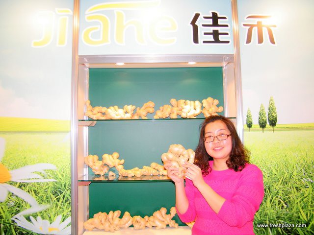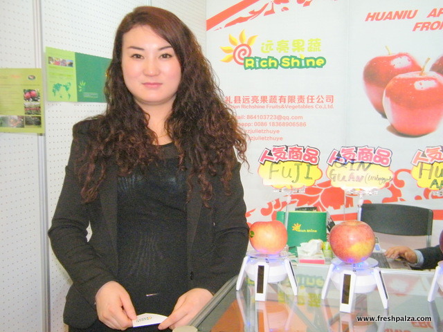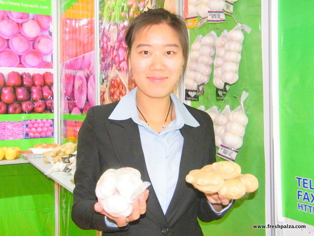 Amy Zhang of Jining Fuyuan Fruits and Vegetables (China), products are exported to America, Europe, Africa, and Asia. Main products are apple, pear, ginger and garlic.