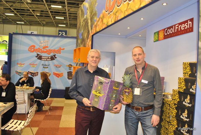 Nic Jooste and Mario Goede from Coolfresh International introduce their new packaging and variety of the Bonsweet Diamanté pineapple.