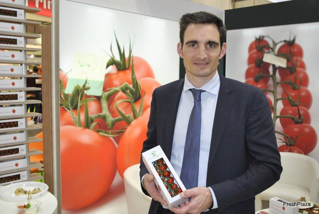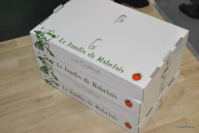 Christian Jouno introduces a new packaging for the tomatoes. Blacklove tomatoes and Greendélice respectively a Chocolat coloured cherry baby plum and a green cocktail tomato
