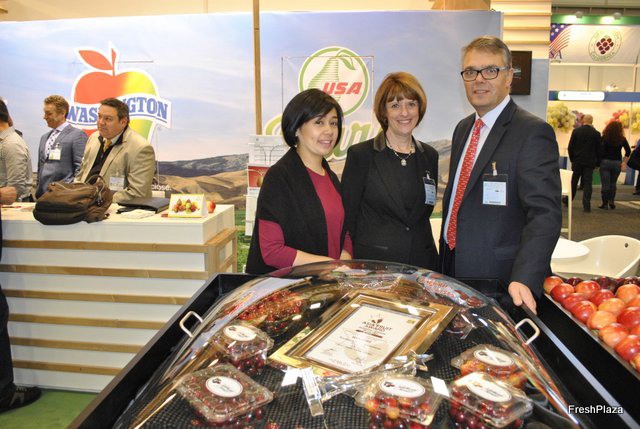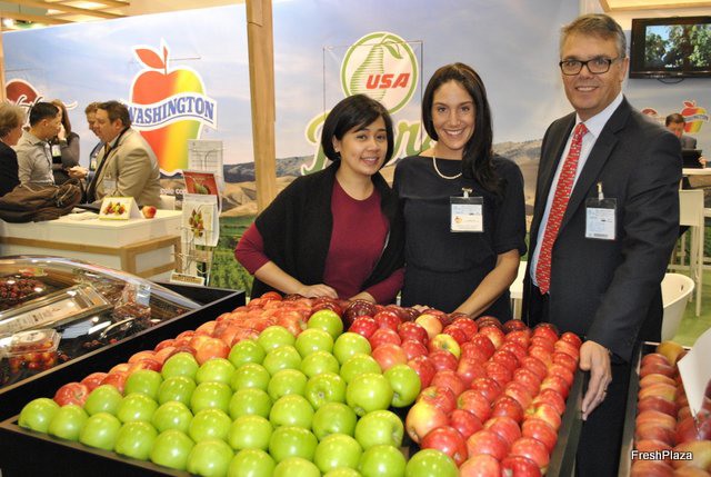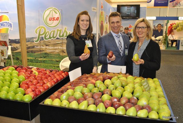Lynsey Kennedy, Kevin Moffitt and Brigitte Hörster from USA Pears promoting pears international