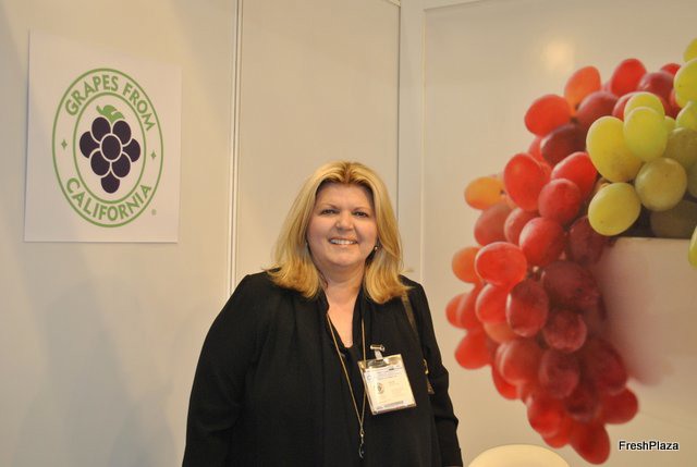 Susan Day from the California Grape Commission promoting grapes from California in their new booth