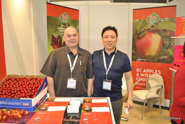 Tom Stearns and Rick Chong from the B.C. Tree Fruits promting their apples and cherries
