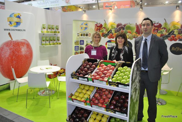 Jean-Michel Chanas from Métrl Fruits and Laur Loise from S.N. Comptoir Rhodanien, promotes summer fruit, soft fruit and apples