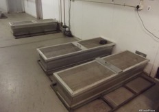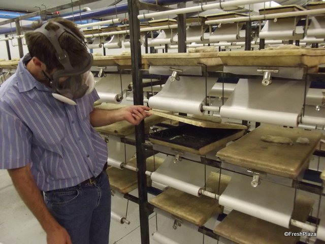 This the pupation room the bottles are opened for seven days and need to be repeatedly turned. The pupation board which you see underneath is then removed and taken to the