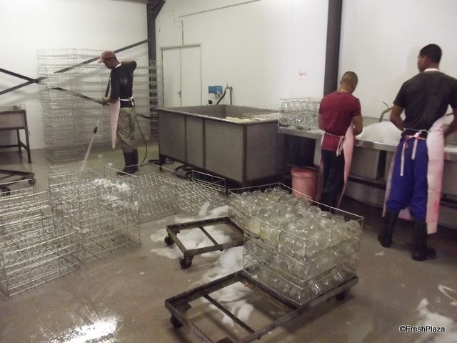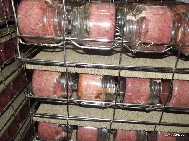 Thousands of these jars are filled everyday and those at the end of the incubation period are then moved on the next stage.