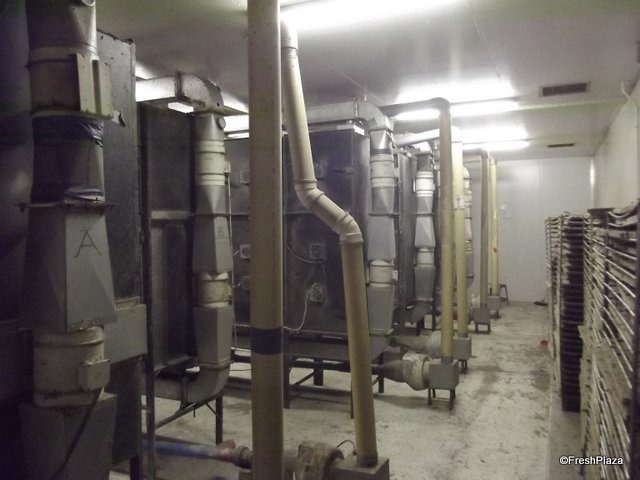 The pupation boards are then taken to this room for around ten days where the when the moths hatch they fly into the light and are sucked up the pipes for harvesting.