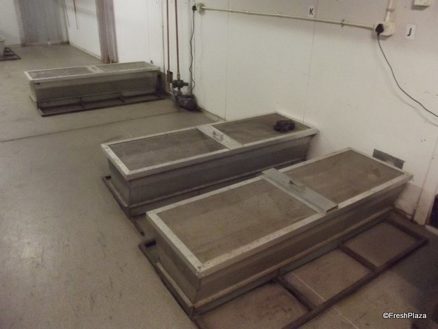 The moths land here in a room which is kept at 6C which keeps them inactive and insures no damage is done.
