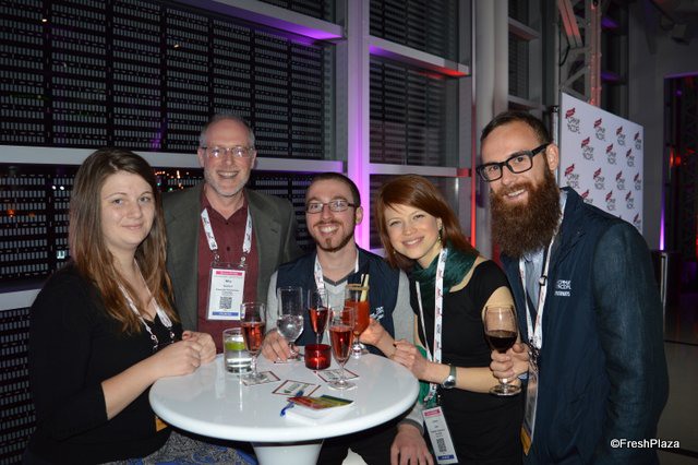 Susanne Bertolas and Karen Brux from Chilean Fresh Fruit Association. Second from left is Jim Czenze from van Meekeren Farms, together with Jason Sharpe from Colemans and Michael van Meekeren from van Meekeren Farms.