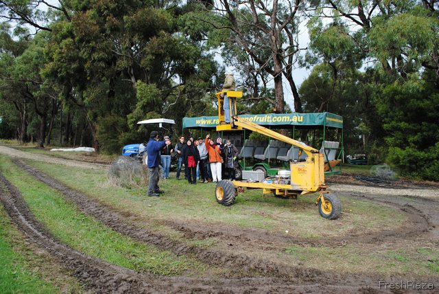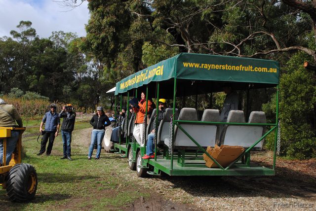 Tourists get taken around the orchard on tours.