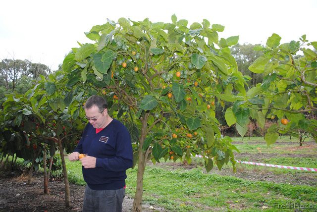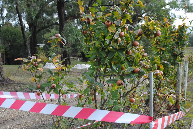 Cameron Rayner let us taste every variety of tamarillo, including the yellow. The orchard has 80,000 of these trees, and could be the largest grower of them in Australia.