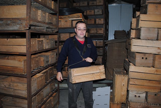 These are the original boxes they used to pick the fruit a hundred years ago. The Rayners built the frames they are sitting in themselves.