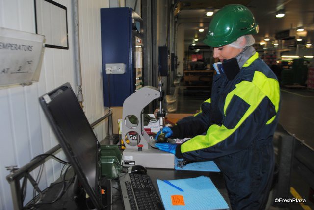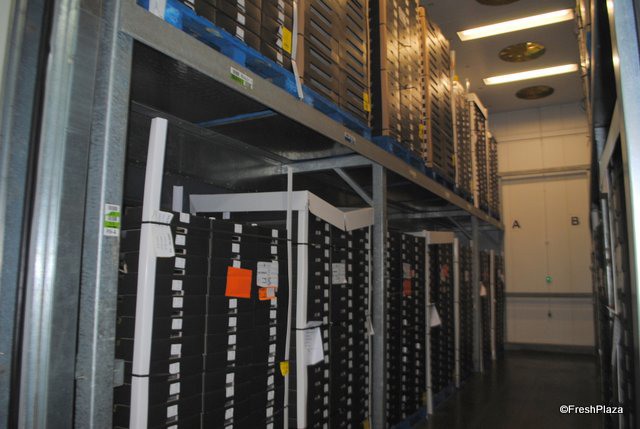 In this room a sample of all fruit is kept and stored under the same conditions as in the stores. This so they can measure the actual shelflife quality of each product. After the test is complete the fruit is sold to employees and the proceeds given to charity.